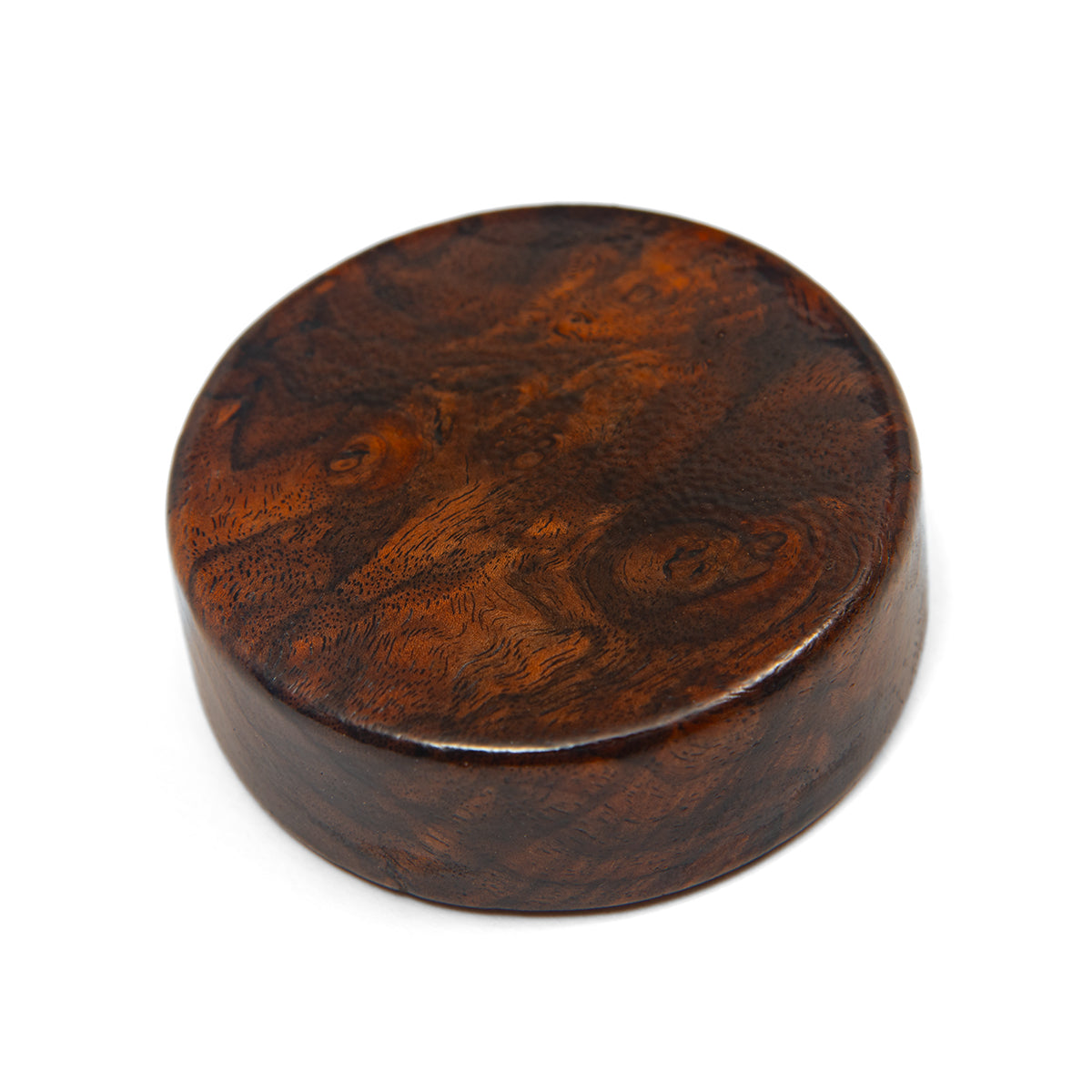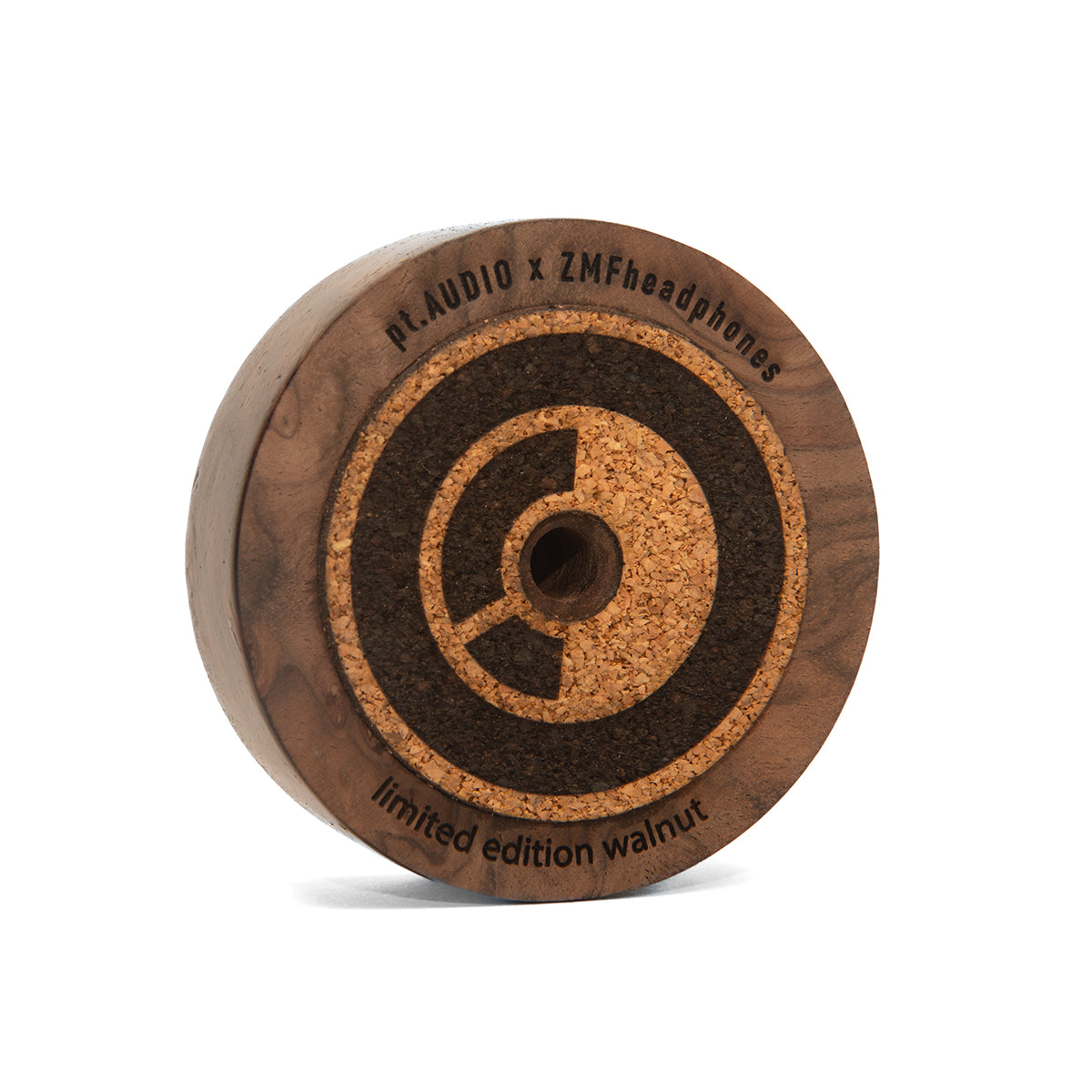 Our pt.AUDIO Walnut Record Weight is made out of beautiful walnut burl. As an extremely limited edition, we now offer stability for your vinyl playback in a new material and weight. The wood grain on the top of each piece is unique like a fingerprint or signature. This limited run features the PTA roundel logo on the bottom with collaborative branding. Cut and finished in the USA.